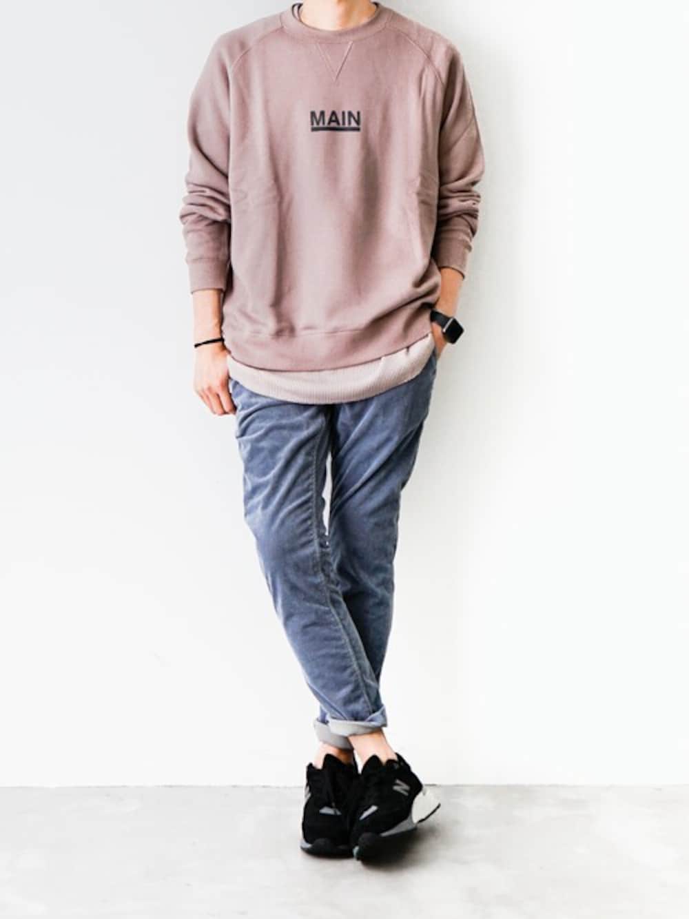 ロンT感覚で気軽に着れる薄手のスウェットのスタイル。 サマーコールのパンツに合わせてスモーキーなカラートーンでまとめてみました。