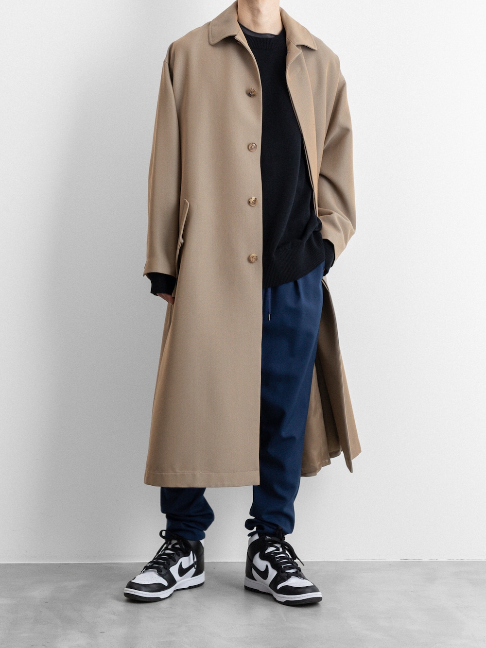 beige blue black . . . balmacaan coat wool sarrouel pants dunk