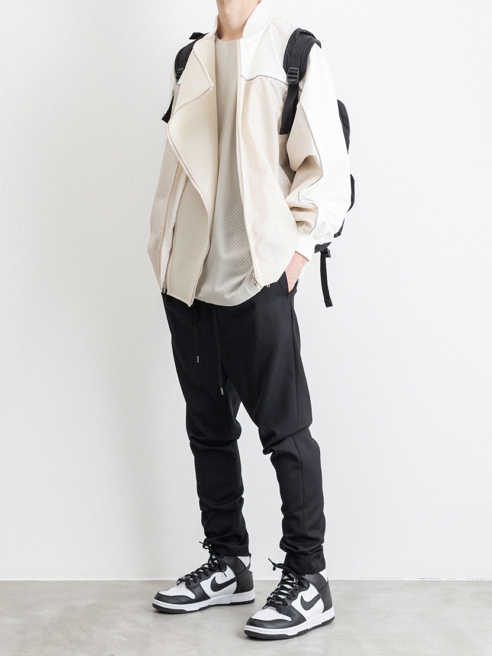 ecru white black . . . double zip blouson bias tee easy pants dunk