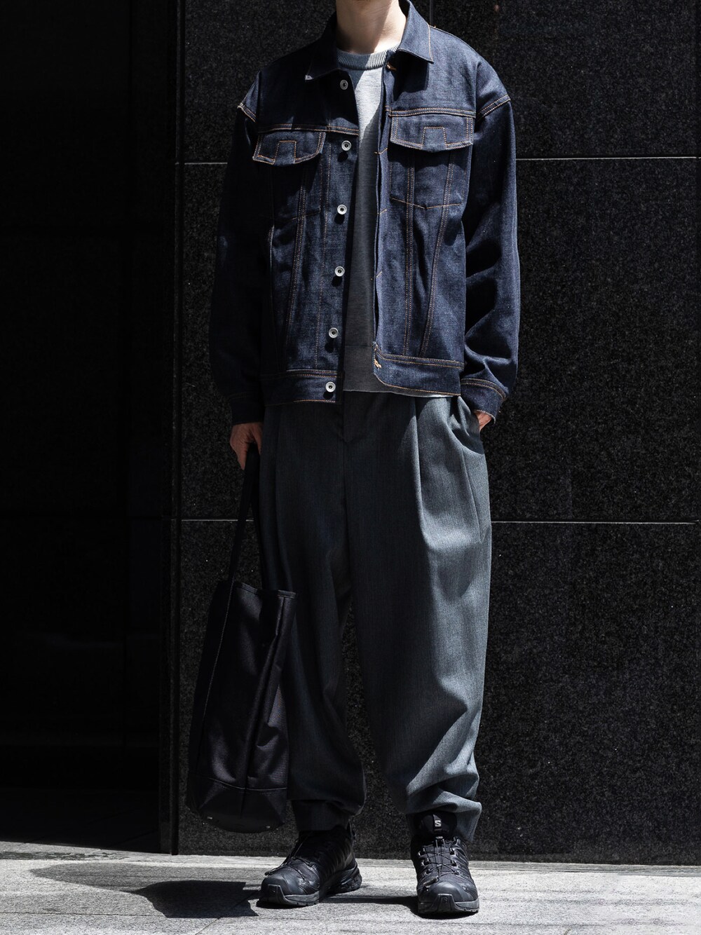 indigo gray black . . . oversized denim jacket wool 2tuck tapered pants salomon