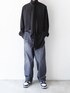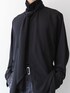 モードな印象のオーバーサイズのスカーフシャツ。 ワイドジーンズと合わせて柔らかなAラインシルエットに。