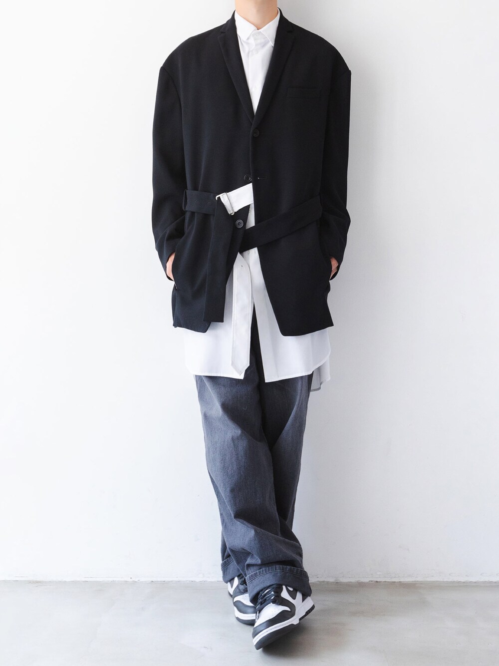 Layered Arrange🤝 ドロップショルダーのベルテッドジャケット+着丈のあるベルテッドシャツ