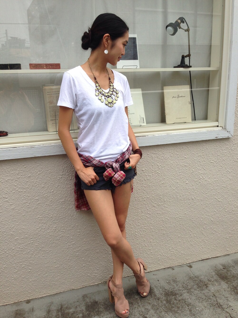 秋冬の新作、グラデーションチェックシャツは真夏の今時期から腰や肩にかけて着て頂けます!LAガールのカジュアルスタイルにはシンプルさと大胆なジュエリーが欠かせない。[[ Planet blue world SO-CAL LINK OMOTEDANDO店 〠150-0001 東京都渋谷区神宮前4-9-8 TEL:03-6459-2617]]