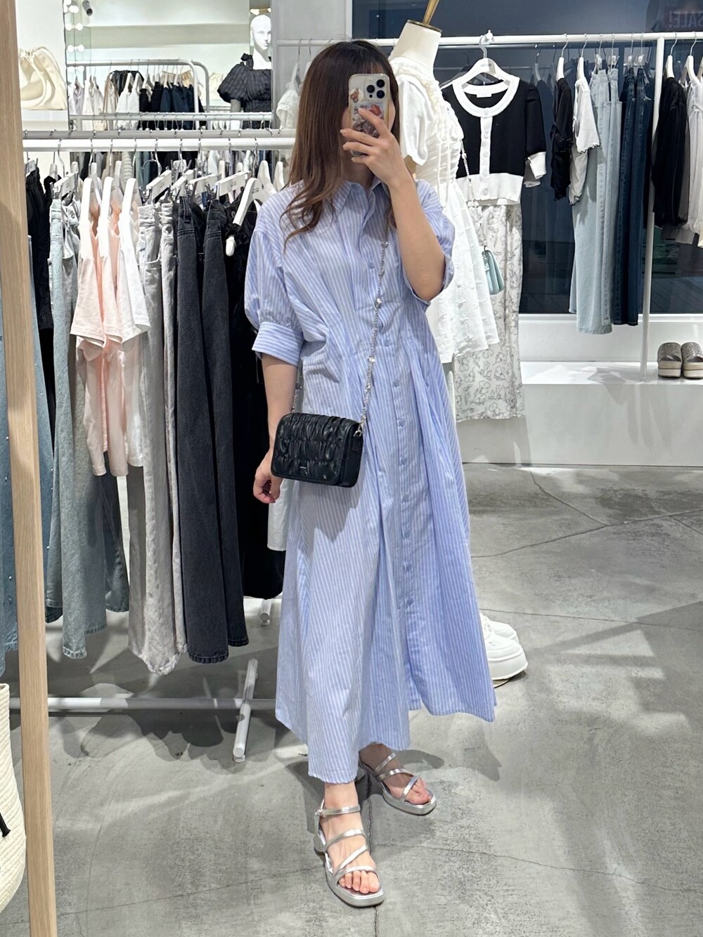 しんもも(one after another NICE CLAUP)のワンピース「バックレースアップシャツワンピース【WEB限定商品】」を使ったコーディネート