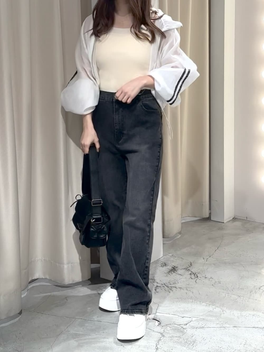 しんもも(one after another NICE CLAUP)のブルゾン「ライン入りシアーショートブルゾン」を使ったコーディネート