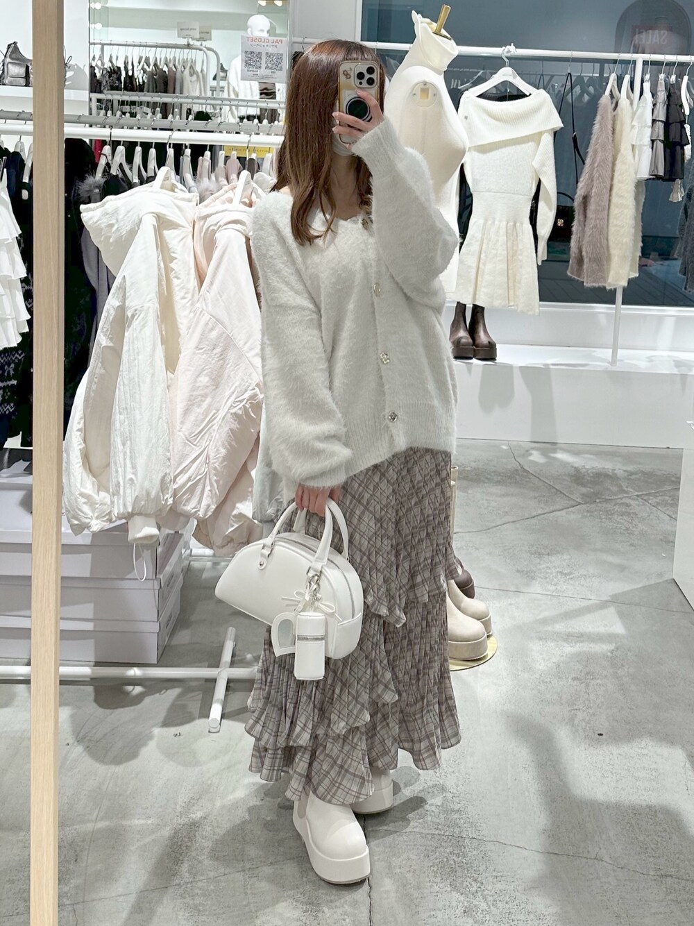 しんもも(one after another NICE CLAUP)のハンドバッグ「チャーム付きボストンバッグ」を使ったコーディネート