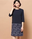 本日は久しぶりのワンピーススタイルです! 明るいトーンのネイビーで、スカート部分は上品な花柄のジャガード素材。 スッキリとしたサック型のシルエットで動きやすく、 オフィスや食事会、オケージョン対応も出来る《きちんとワンピース》は持っていて損のない一着☆
