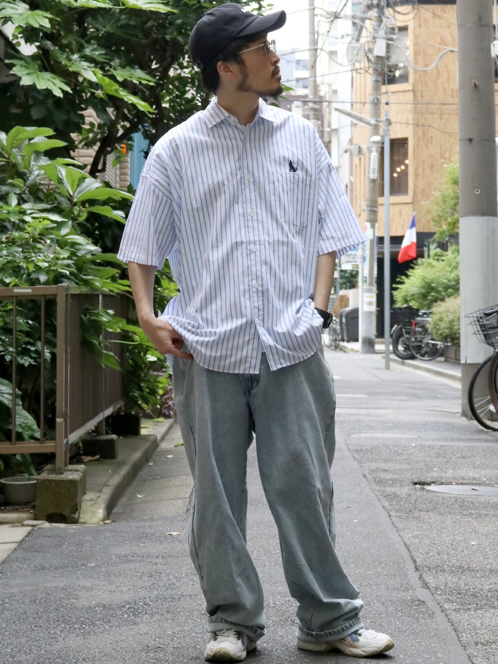 StartingOver_officialのシャツ/ブラウス「別注【Healthknit Product】one point stitch broadcloth shirt/ワンポイント刺繍 ブロードクロス レギュラーカラー 半袖シャツ 無地/ストライプ」を使ったコーディネート