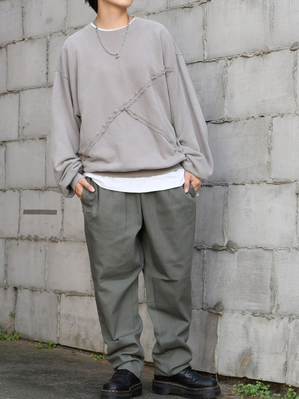 StartingOver_officialのスウェット「sulfur dyeing cut off switching hard wash sweat shirt/硫化染め カットオフ 切り替えスウェットシャツ」を使ったコーディネート