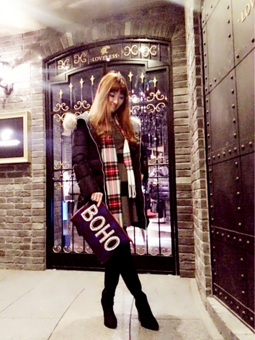 ともみ(LOVELESS 青山店)のダウンジャケット/コート「【LOVELESS】WOMENS コヨーテファーブラックナイトダウンコート」を使ったコーディネート