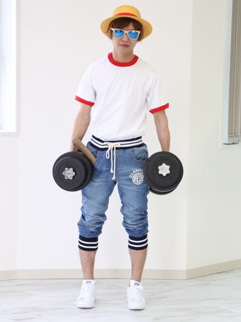 ボクちゃんのひとつ外しコーデ 本気で重いダンベル持っての必死のキメ顔 頑張りました