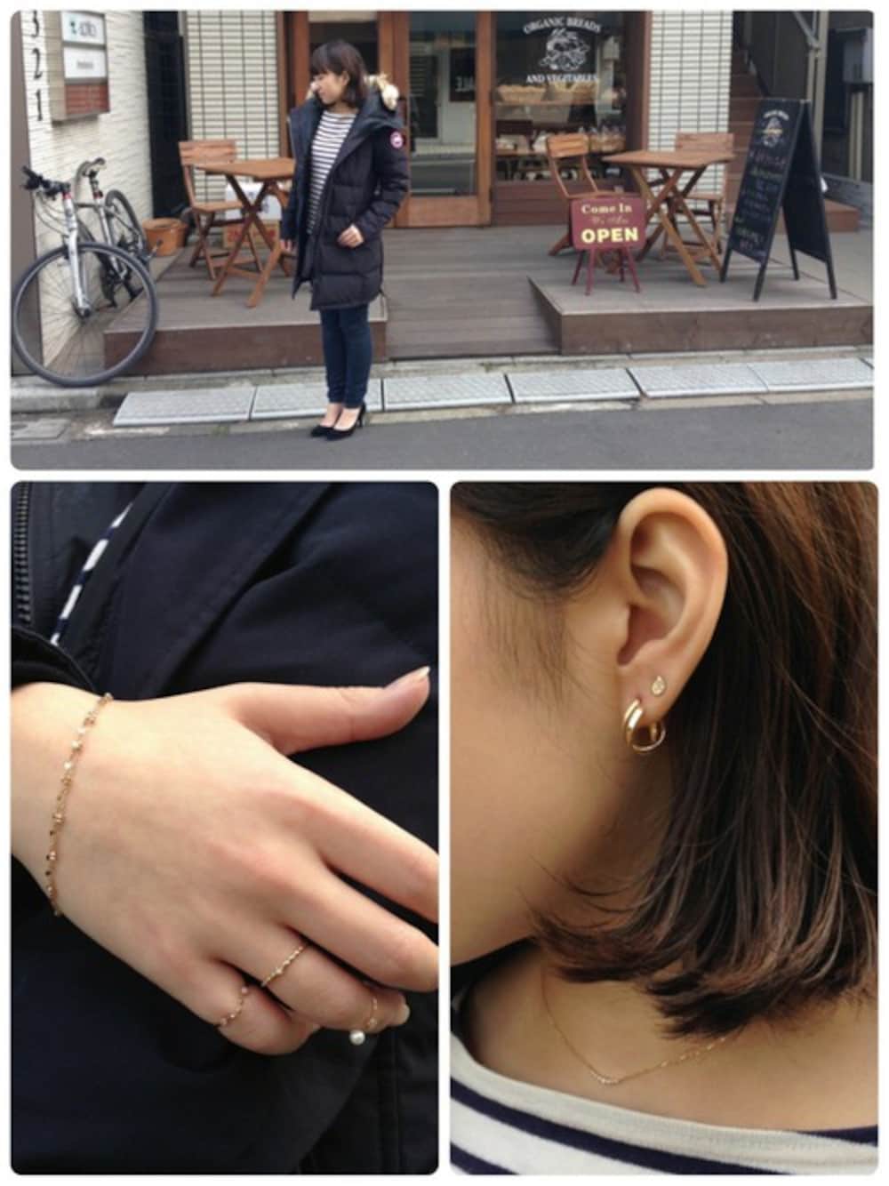 TAKE-UP_STAFFのピアス(両耳用)「ヒネリツインフープ( YG)」を使ったコーディネート