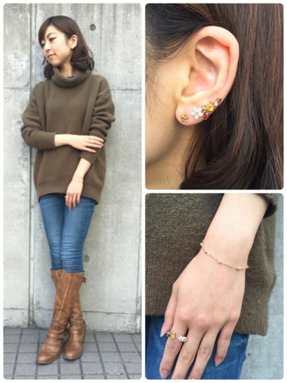 春物のジュエリーを着けたい! でもまだ春物の洋服を着るのには寒いし・・・ という方も多いのでは?! 安心してください、着けられますよ! TAKE-UPのSpring Collectionは春のピクニックをテーマにしたジュエリーですが、 ボリュームニットにも相性抜群です♪ staff / Anna