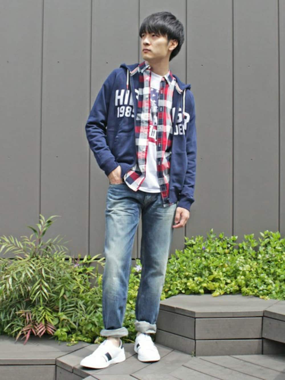 この春すでにたくさん着回しているチェックのシャツをPARKAにイン。 今日はコートがいらないくらい暖かいのでリラックスしたパーカスタイルでお出掛け! ロゴやグラフィック、チェックを重ねても使用カラーが統一されてれば、スタイリングがちらからずにまとまります。 動きやすいゆるめシルエットのデニムは、春のアクティブな気分にちょうどよく、汚れも気にせずにこの先どんどん着まわしていきたい1本です。