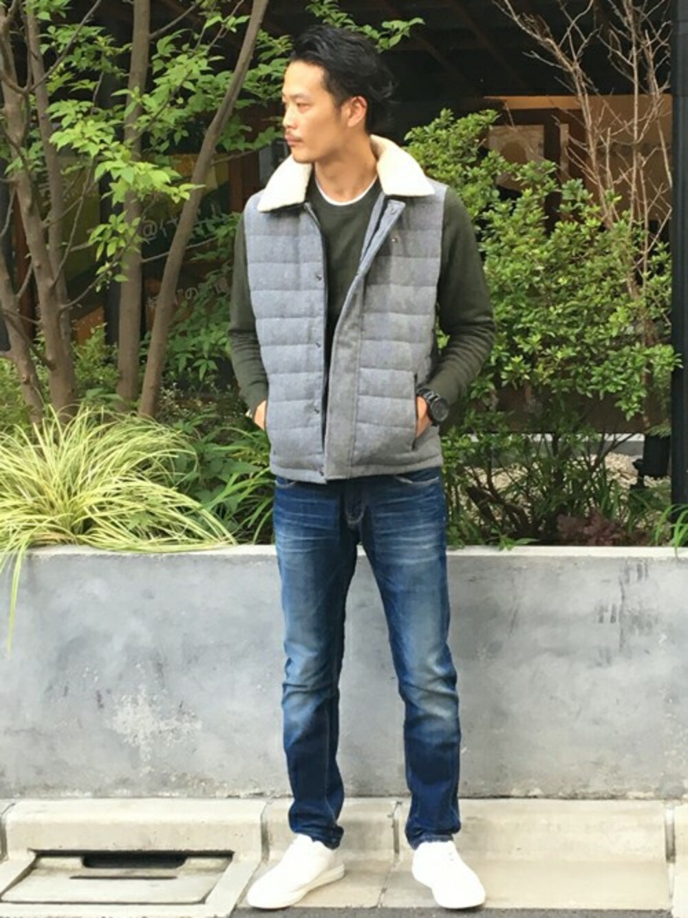 YOUのダウンベスト「マイルズミックスダウンベスト」を使ったコーディネート