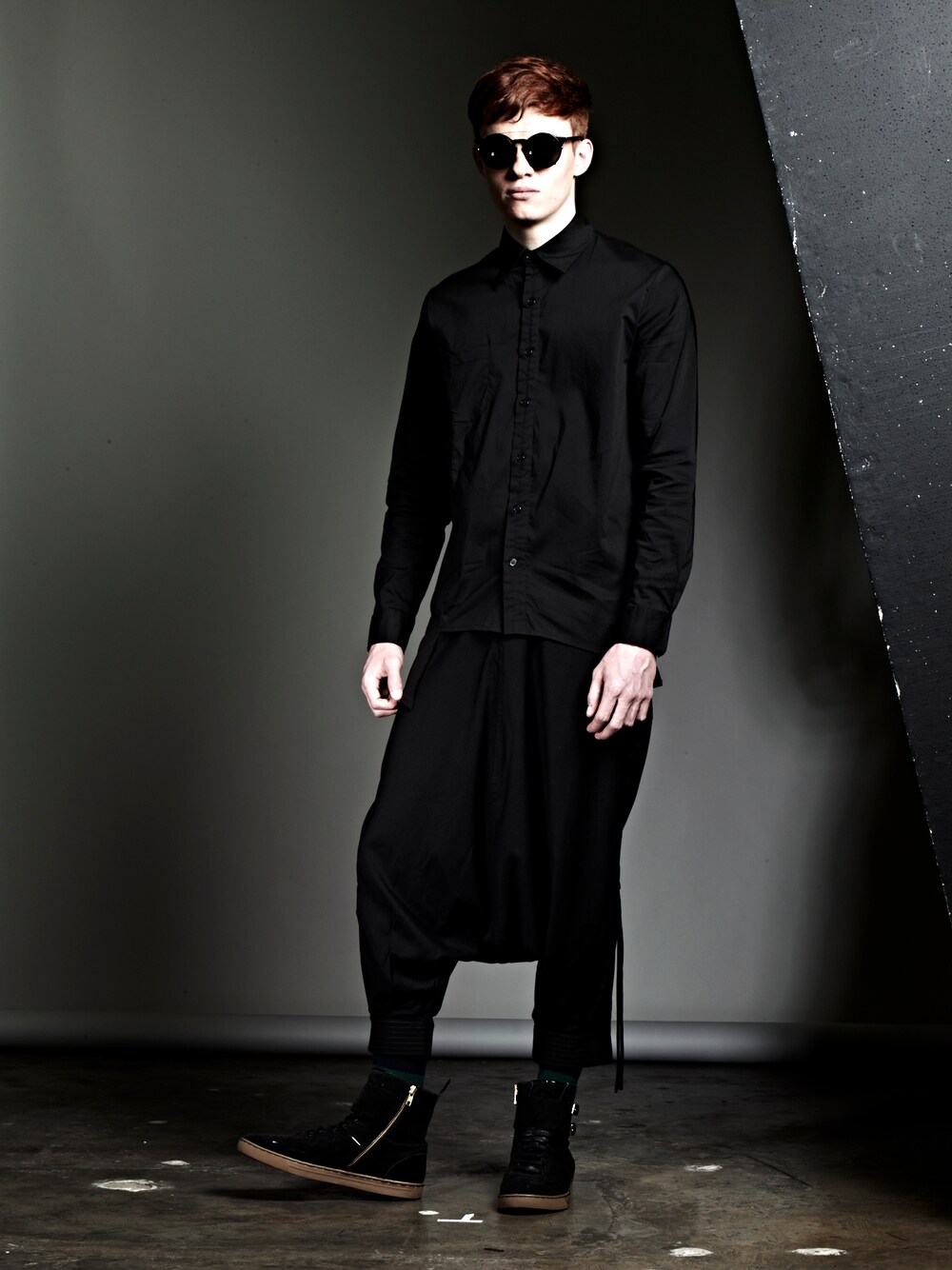 Model is wearing Black asy hem shirt with side drawstring black harem