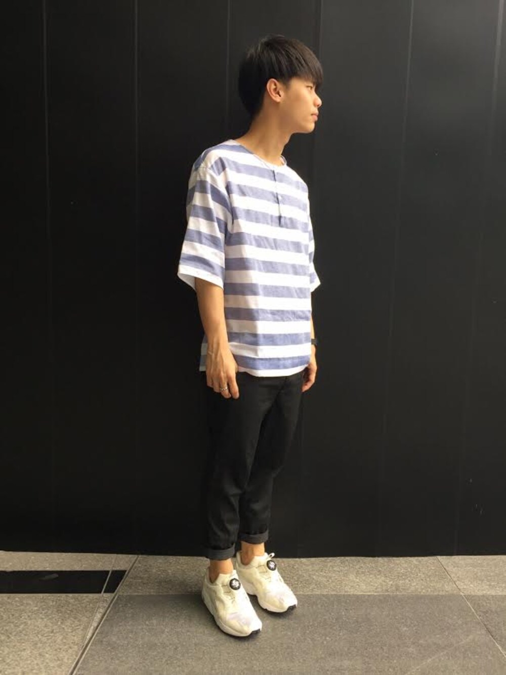 Weilun is wearing -J-A-S-O-N-'s Black pinstripe pants from Spring Summer 15 collection.