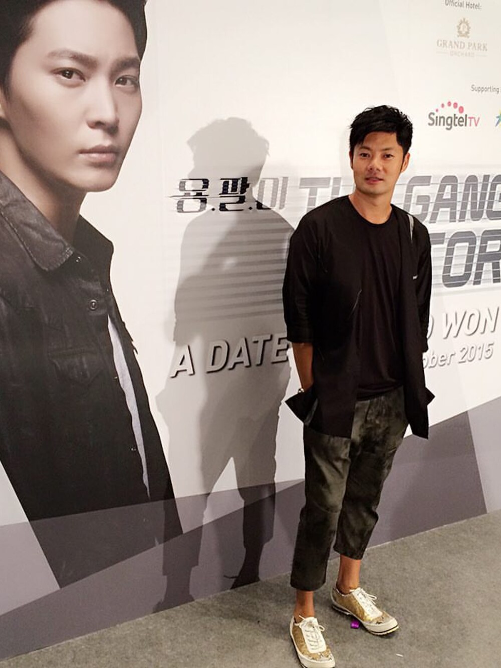 Danny is wearing -J-A-S-O-N- Black long cotton cardigan with faded prints chinos.