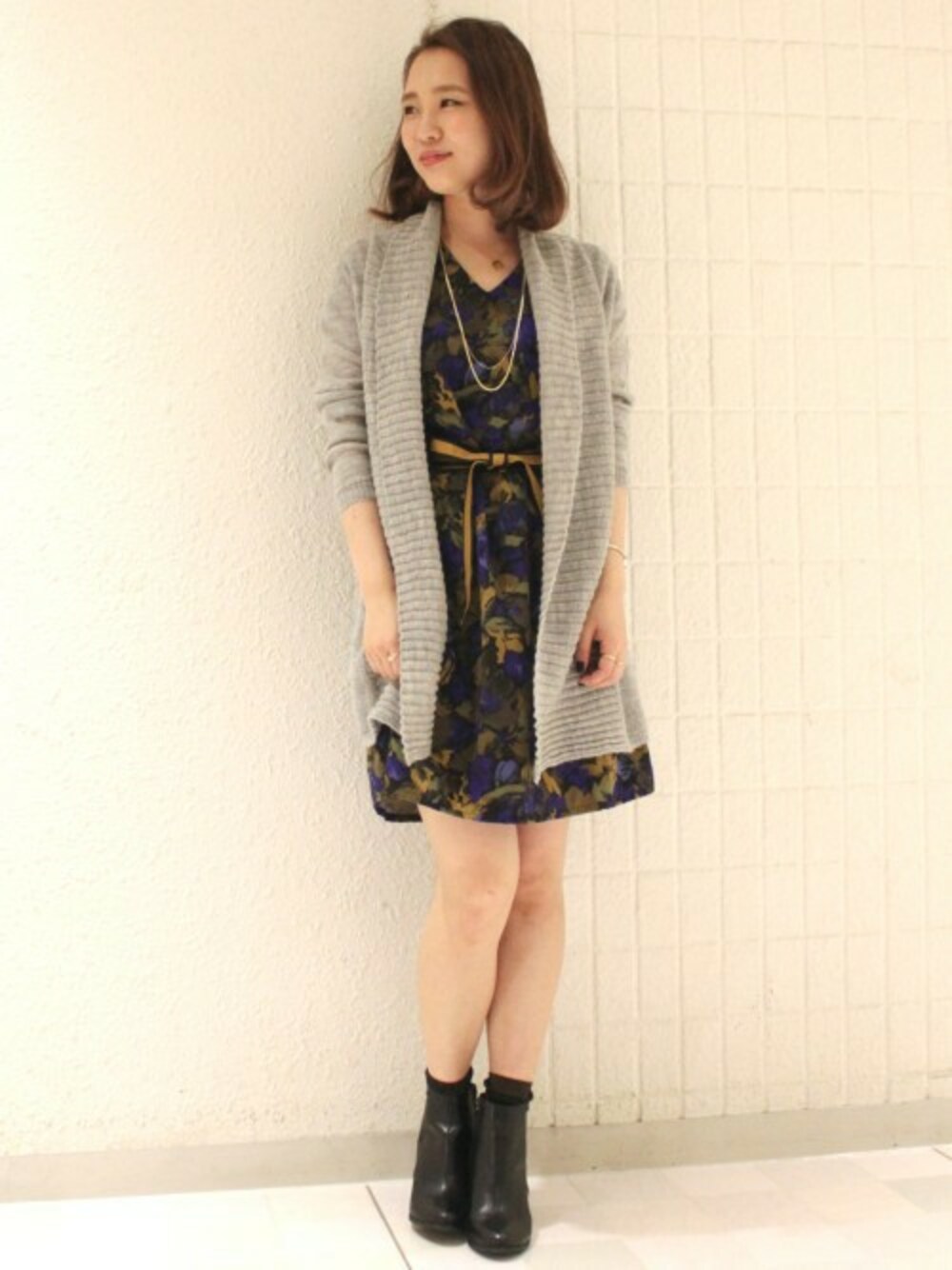 大人かわいい花柄ワンピにアルパカ100%のロングカーデで暖かく。