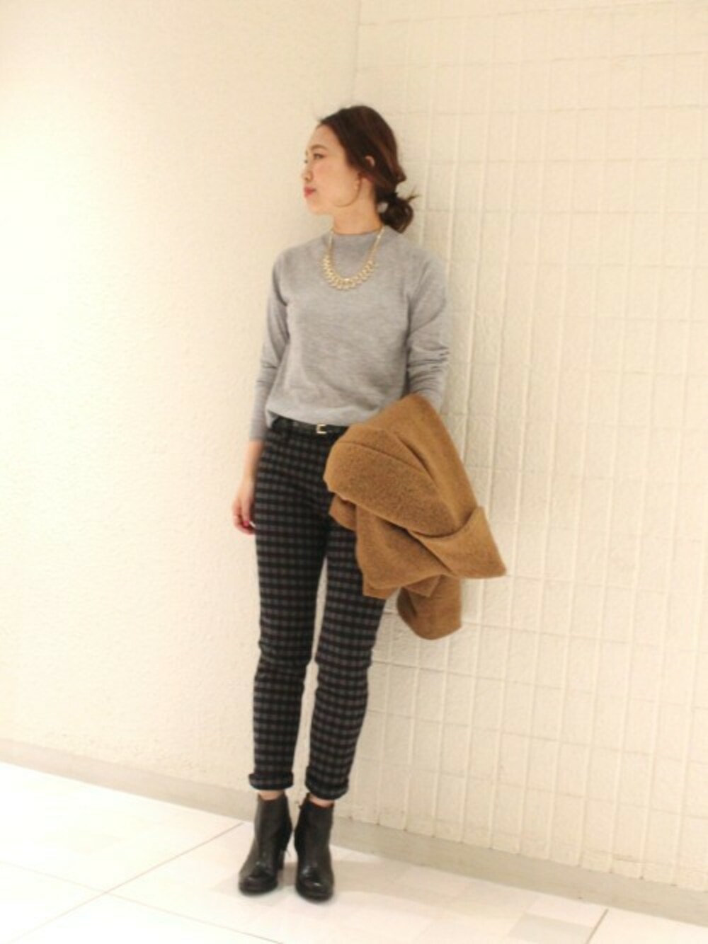 ちょいハイネックが可愛いシンプルニットは防寒にも◎あったかコートを羽織れば雪の日も元気に外を歩けます♪