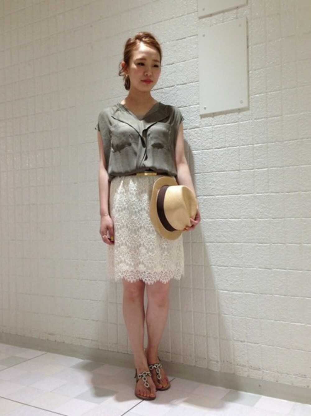 フェミニンな総レースのスカートにとろみブラウスをプラスして甘すぎないスタイリングにしてみました。