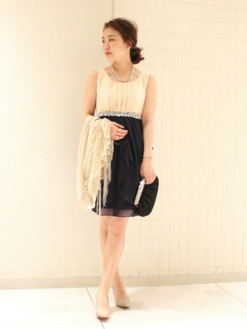 yiのクラッチバッグ「【入荷禁止】プリーツティアラビジューバック」を使ったコーディネート