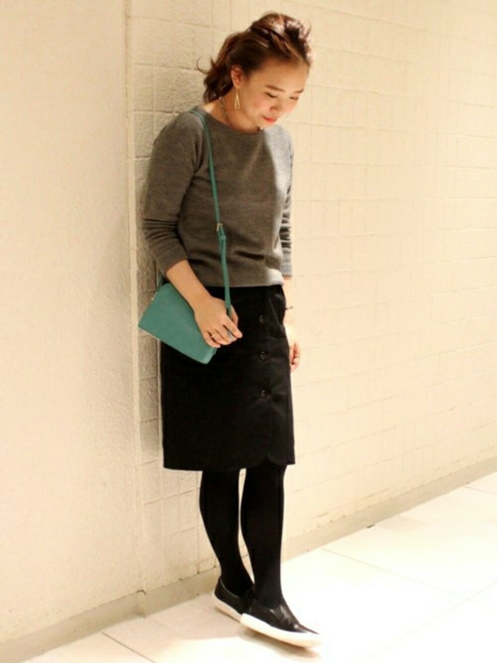 カジュアルスカートスタイルです♪ フロントボタンのスカートがお気に入り。 ミラノリブニットで少し大人っぽく着てみました!