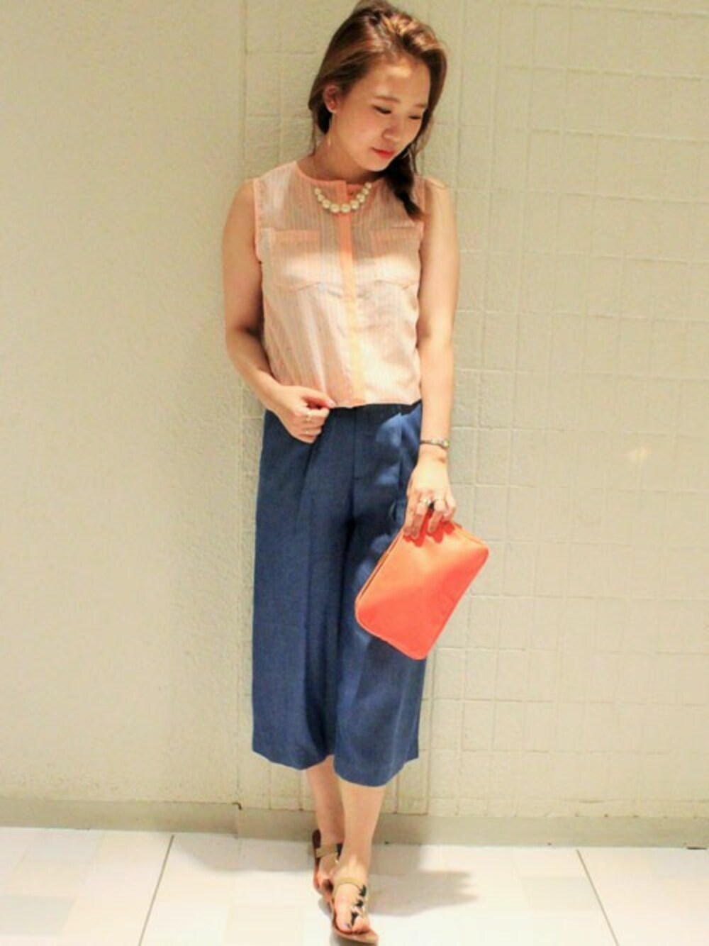 柔らかいサーモンピンクが目をひきます!トレンドのガウチョ合わせで♪