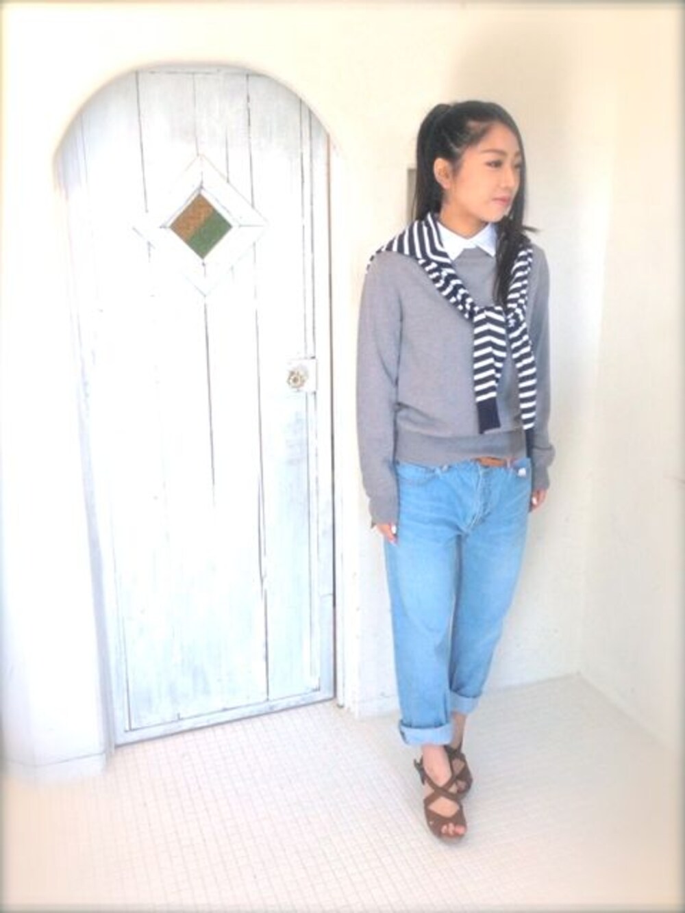 TINKstaffのニット/セーター「レイヤードシャツニットPO*GRY」を使ったコーディネート