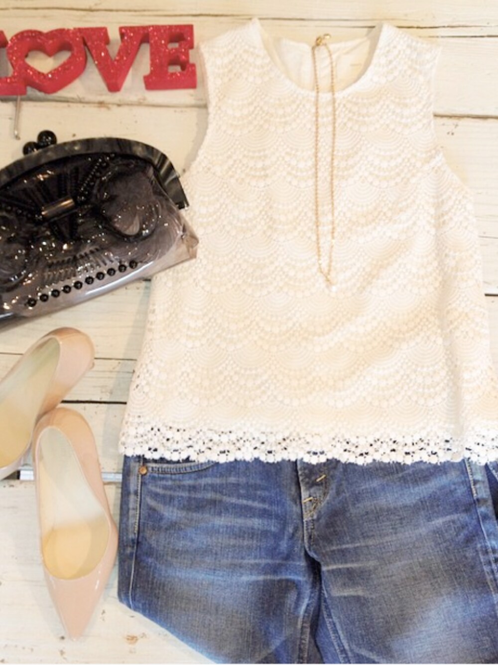レースノースリーブをメインに大人の可愛らしさを♪