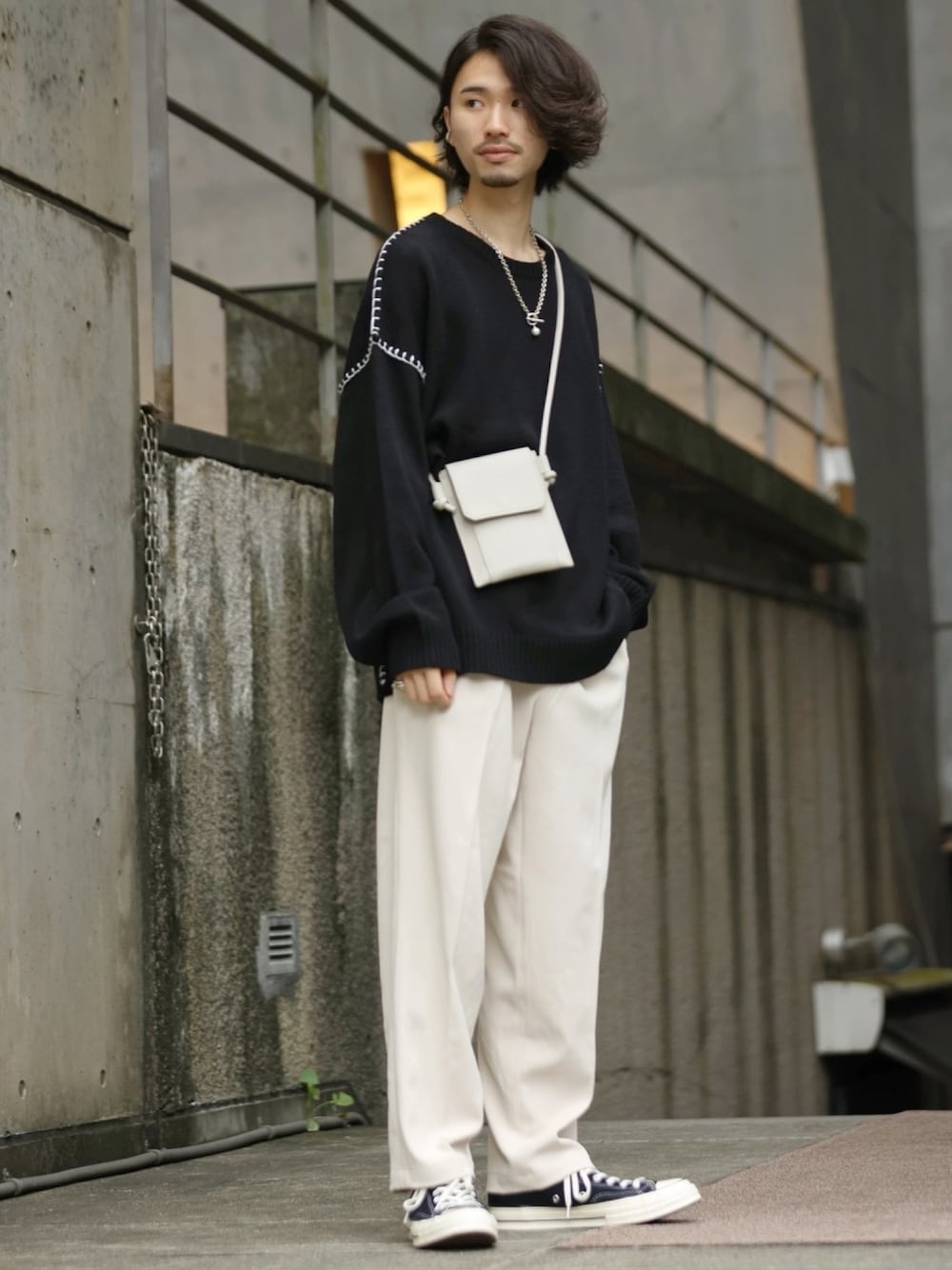 おはようございます☀ ご覧頂きありがとうございます😊 モノクロMIX💁♂️ オシャデザインのビッグニットをメインにモノクロカラーでスタイリング ゆるっとサイジングがめちゃくちゃ可愛い😍 《コーデのポイント✅》 ミニバッグを使いデザイン性の高いスタイルになるよう意識しました! パンツの色と合わせる事で統一感を出し纏まりのある雰囲気に^_^ 是非参考にしてみて下さい♪ またね👋 ------------------------------------------- 🔎instagram▷ 個人 @junred_tobi34 お店 @junred_shinjuku_lumineest 公式アカウント @junred_jp コーディネートのポストや新作商品、個人的おすすめアイテムのご紹介や、好きなものをPOSTしていきます😄 是非チェックしてみて下さい♪