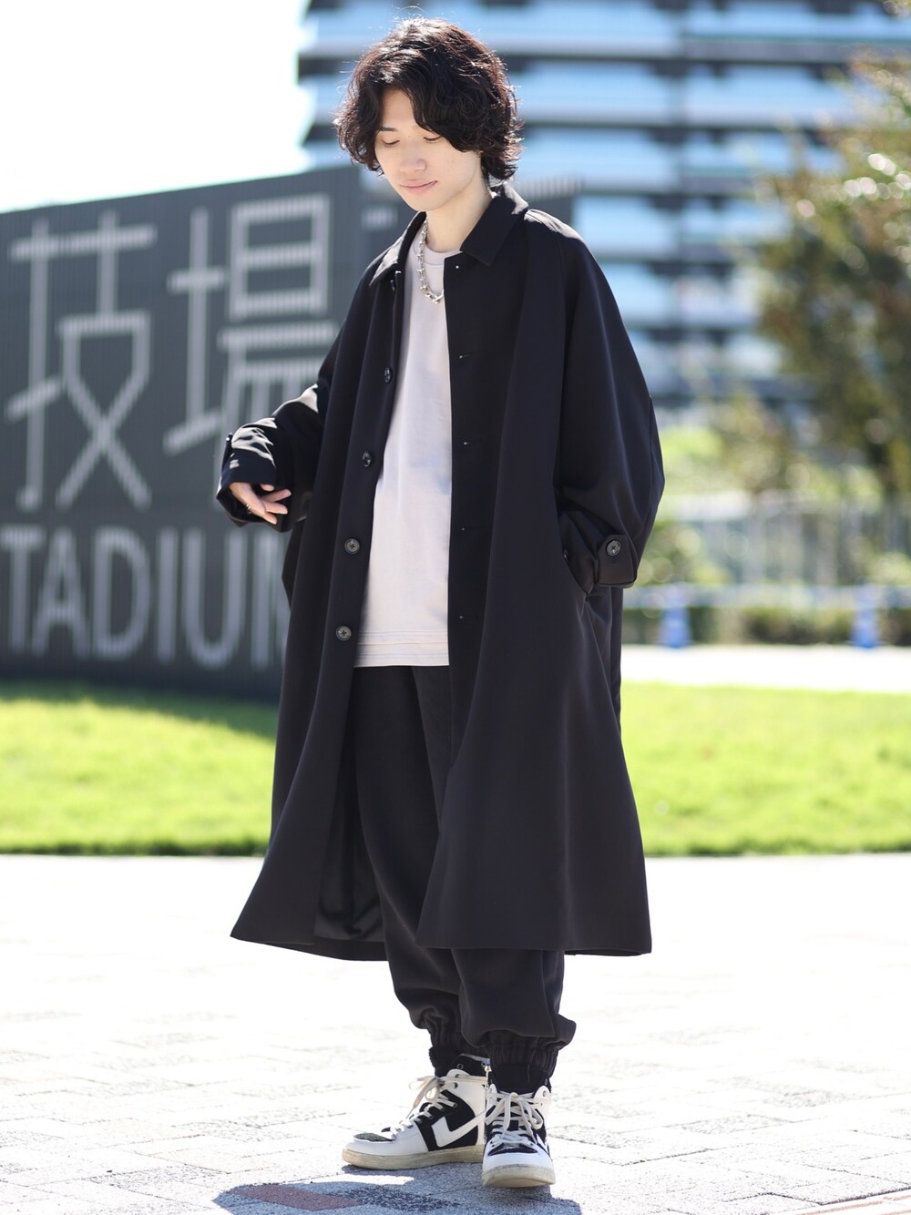 TOBIのステンカラーコート「【セットアップ対応】スムースタッチドルマンステンカラーオーバーコート」を使ったコーディネート