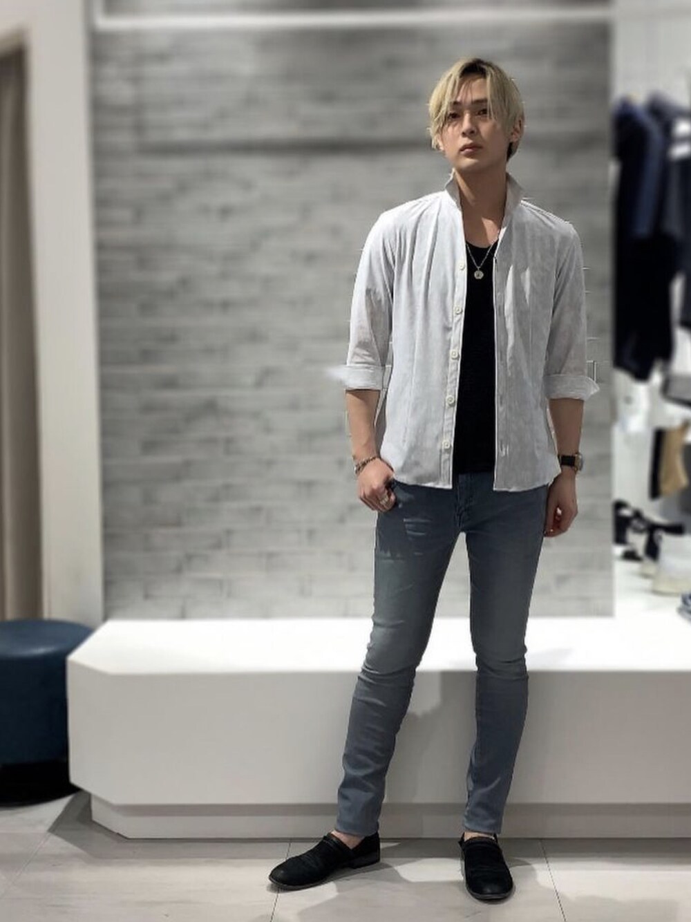 本日は新作のシャツとデニムを合わせてみました! 細身のストレッチが効いたシャツにスキニーデニムの合わせ👍 最近のトルネードマートでは鉄板のコーディネートですね😎 ぜひ皆さんも店頭でご覧になってみて下さい✨ 631-1174003 HTオーナメントシャツ ¥17,380 631-1178003 バイヤスウェーブ半袖カットソー ¥12,980 631-1117015 ベビーコーティングスキニーデニム ¥29,480 631-1166004 ステッチワークサボ ¥28,600 (全て税込価格)