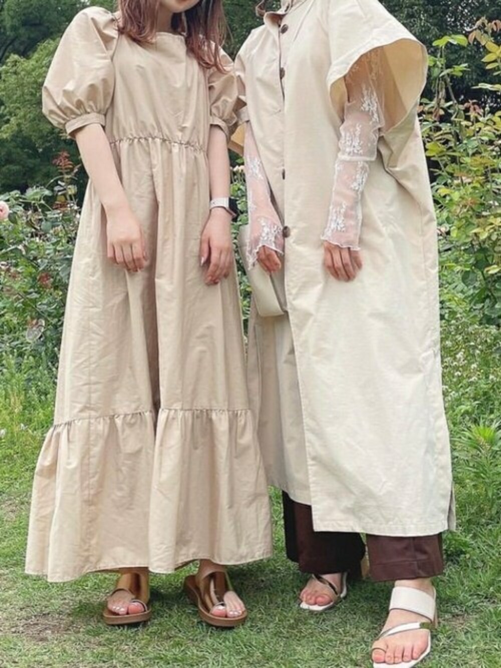 VIVIAN COLLECTION(VIVIAN COLLECTION)のサンダル「スクエアトゥトリオカラー甲バンドトングサンダル」を使ったコーディネート