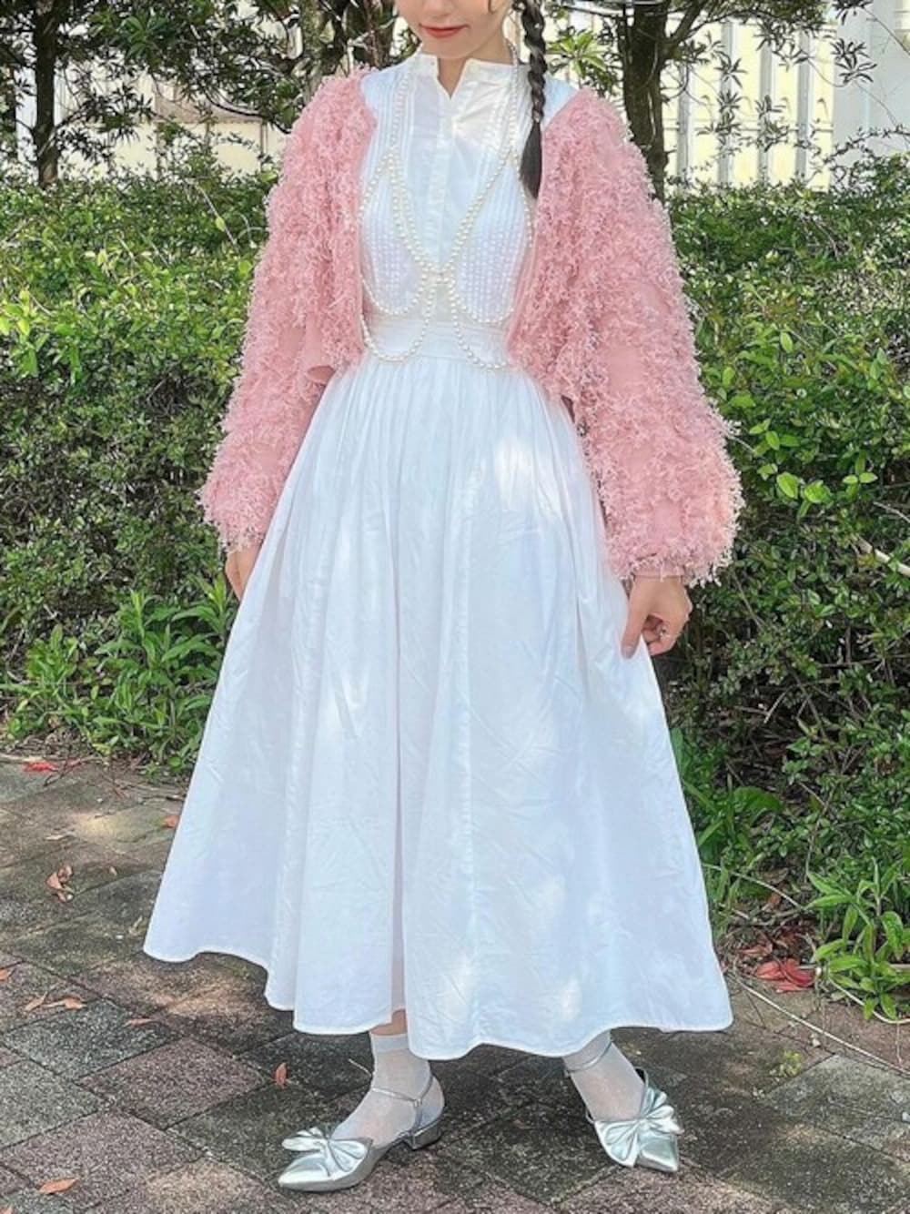 VIVIAN COLLECTION(VIVIAN COLLECTION)のサンダル「2WAYポインテッドトゥリボンストラップミュールパンプス 結婚式 二次会 パーティー フォーマル オケージョン」を使ったコーディネート