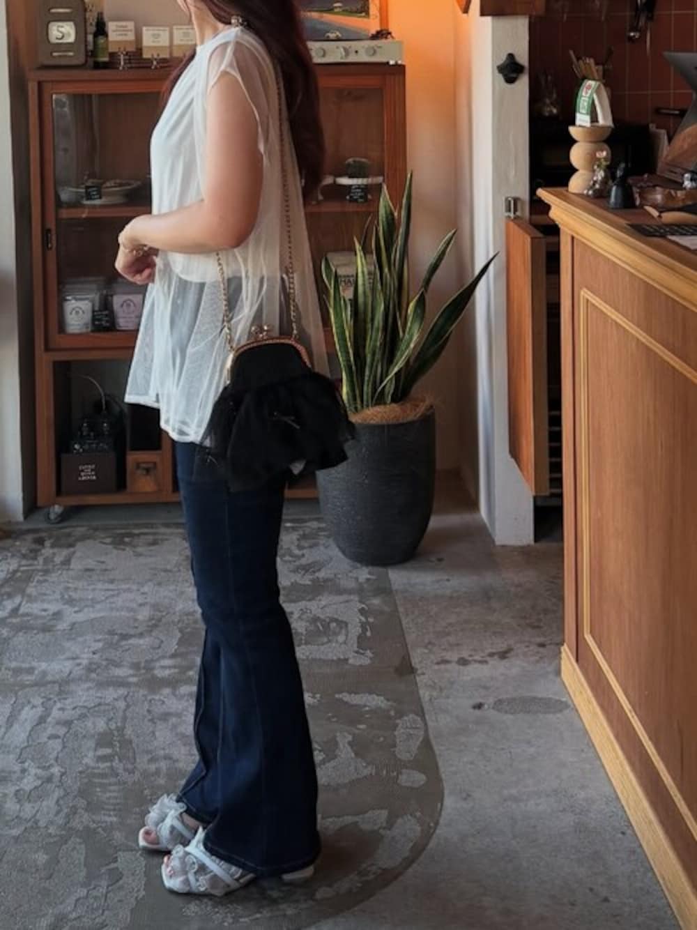 VIVIAN COLLECTION(VIVIAN COLLECTION)のサンダル「シアークロスフリルスクエアトゥストラップサンダル」を使ったコーディネート