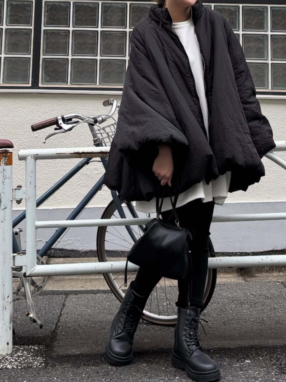 ブラック系のブーツを着用したレディースの秋コーディネートの1枚目の写真