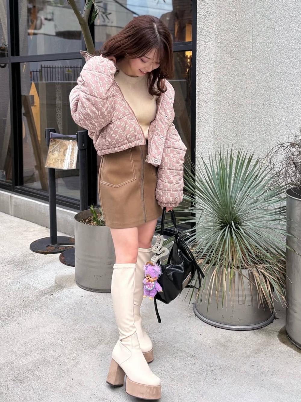 VIVIAN COLLECTION(VIVIAN COLLECTION)のブーツ「スクエアトゥ厚底プラットフォームストレッチロングブーツ」を使ったコーディネート