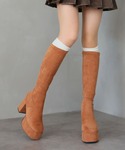 イエロー系のブーツを着用したレディースの秋コーディネートの1枚目の写真
