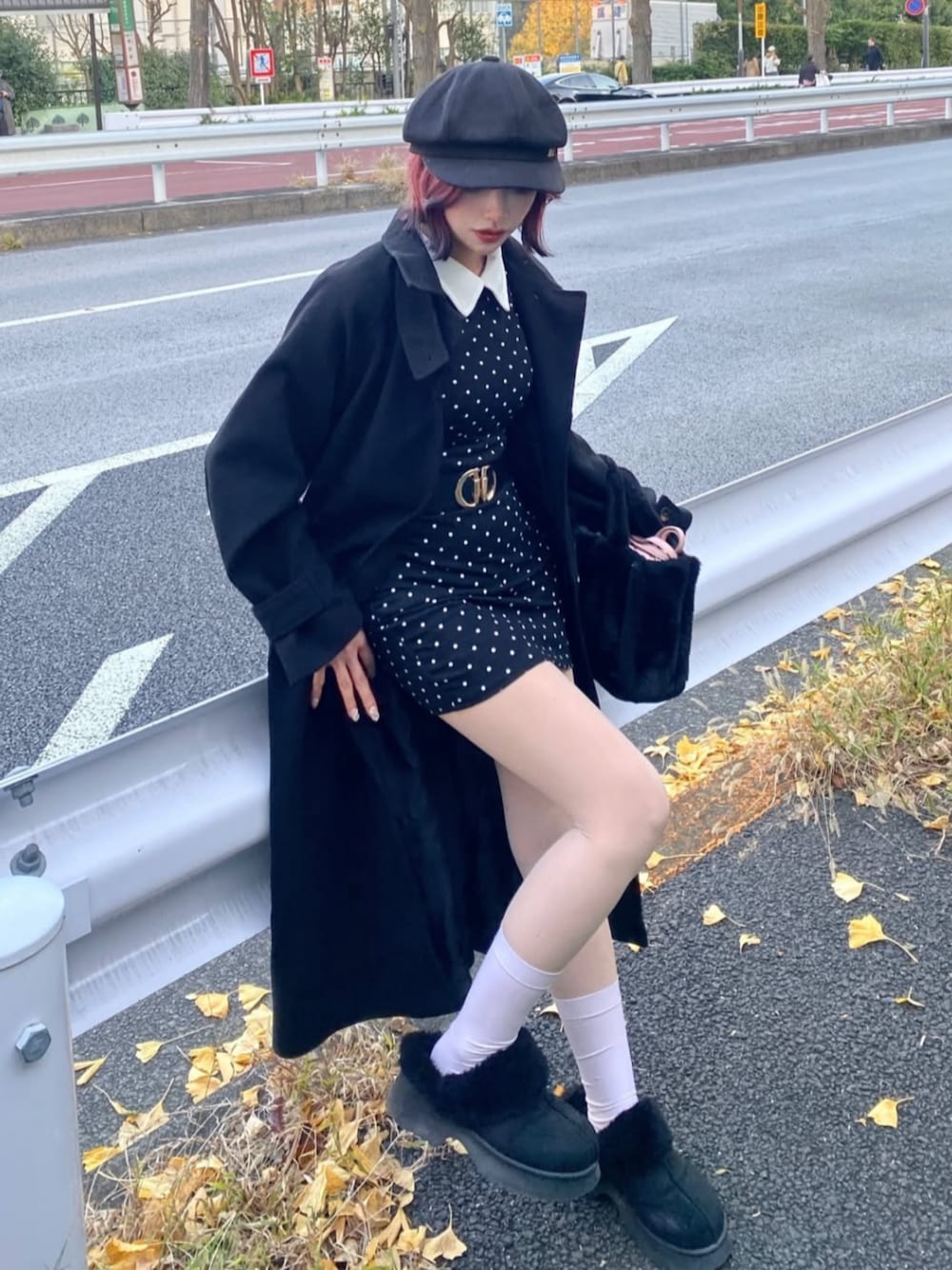 ブラック系のブーツを着用したレディースの冬コーディネートの1枚目の写真