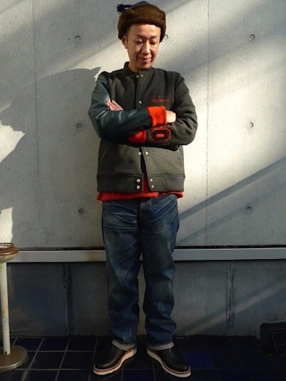 スタジャン(LUMP SENDAI限定)×デニムパンツ×ブーツ