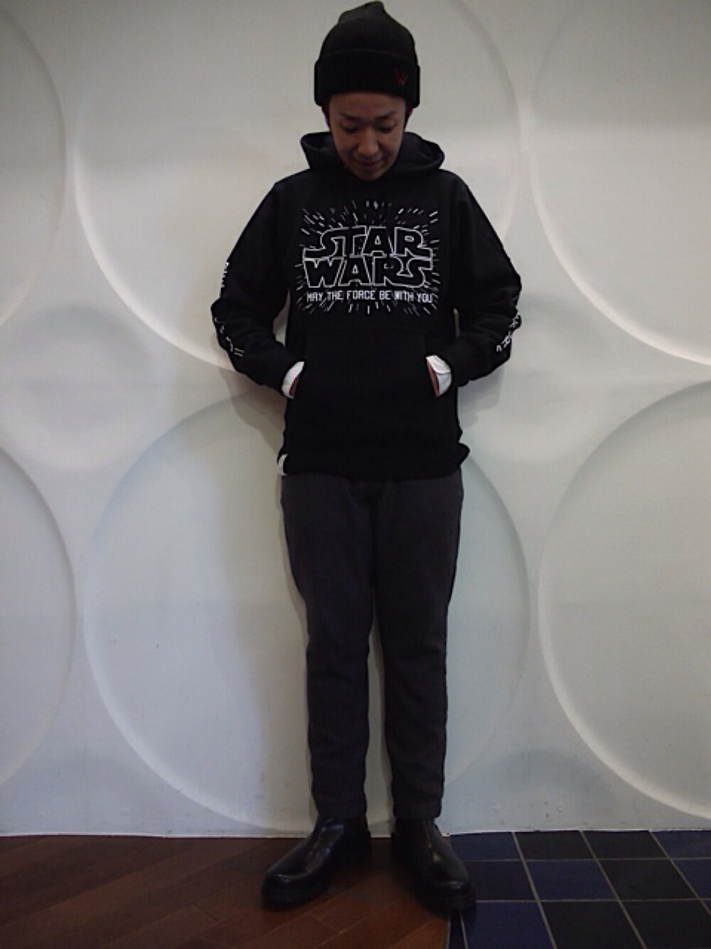 STAR WARS見たいな‥ ニットキャップ×シャツ×パーカー×ウールパンツ×ブーツ