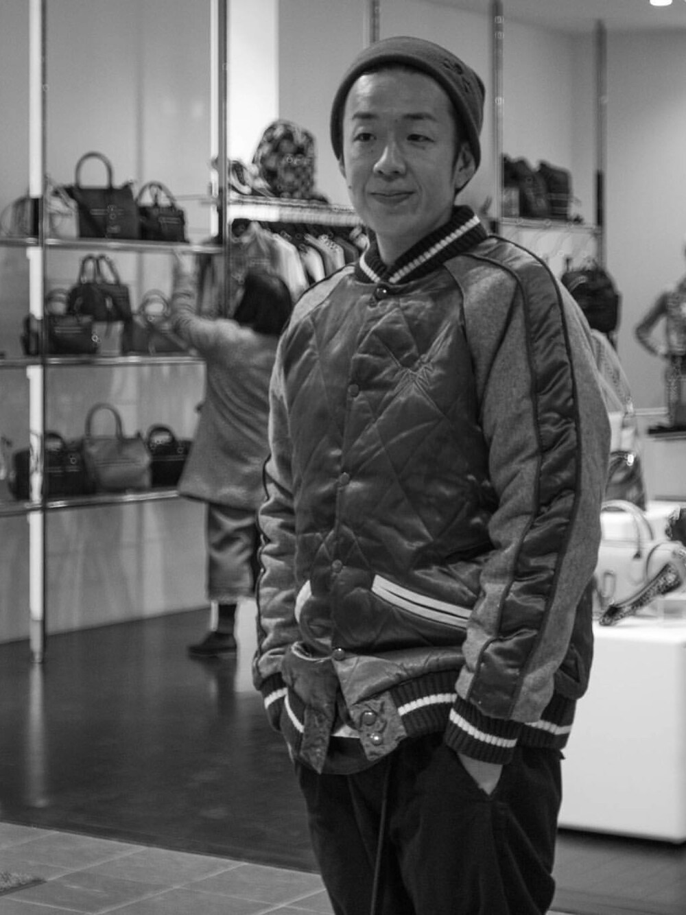 ストリートスタイル ニットキャップ×スカジャン×デニム