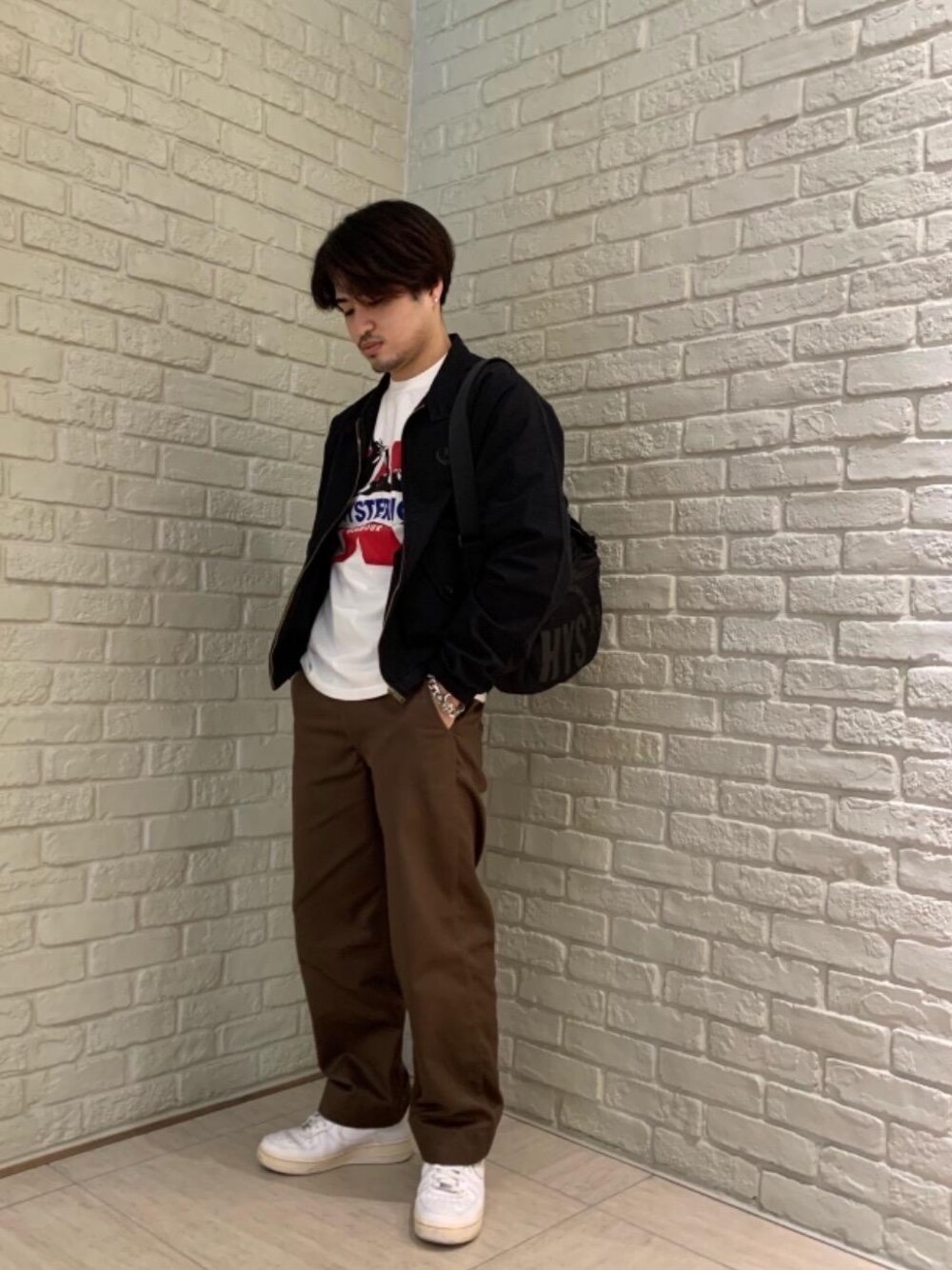 jacket:Ssize T-shirt:Msize pants:Ssize bag:Free