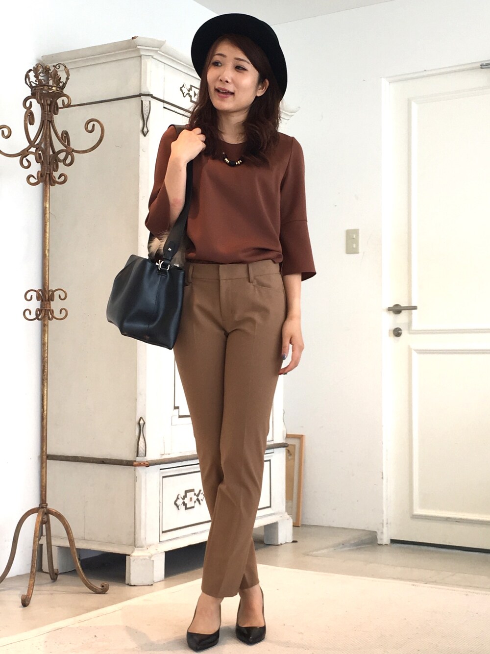 ブラウンのワントーンコーデ。トーンを合わせてオトナっぽくキレイめコーデ。