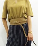 いつものレーススカートにもサッシュベルトをプラスして今年らしく。ボルドー×ベージュが大人の女性を演出してくれます。