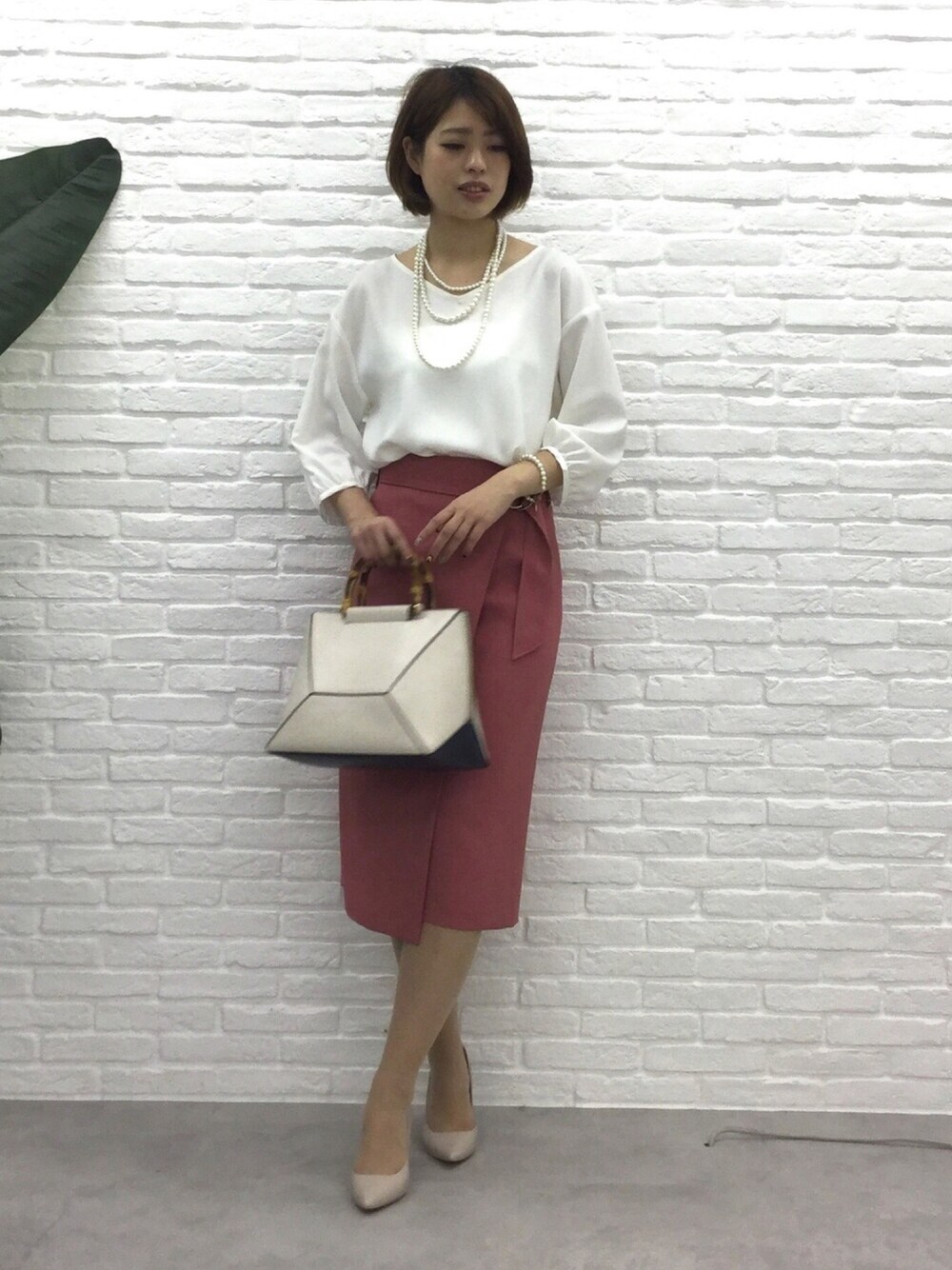 春らしいホワイトとモーヴピンクを合わせてフェミニン過ぎない大人な配色に。 モーヴピンクは差し色としての注目カラーです。
