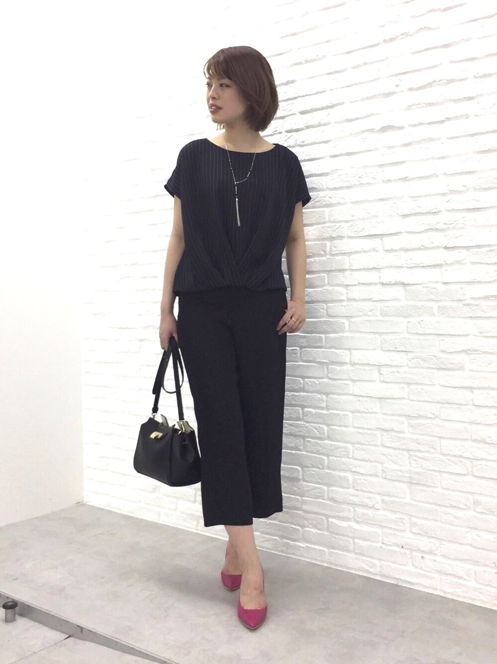 ネイビー×ブラックのコーディネイトは一見難しそうなイメージだけど意外と簡単。 全身がブラックやネイビーより より知的でこなれた印象に見えます。アクセと靴で華やぎをプラス。