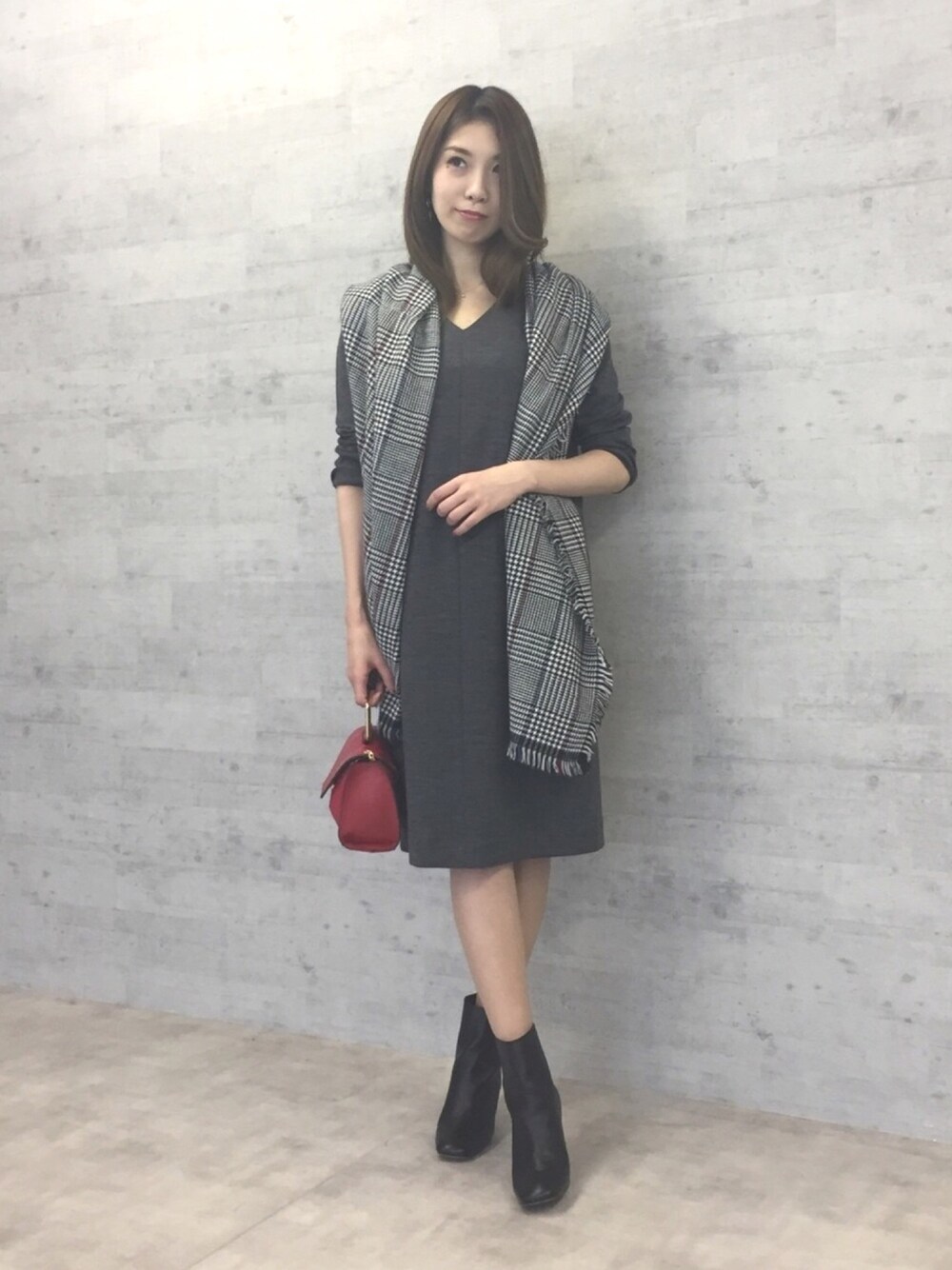 22 OCTOBRE Staffのストール/ショール「グレンチェックストール」を使ったコーディネート