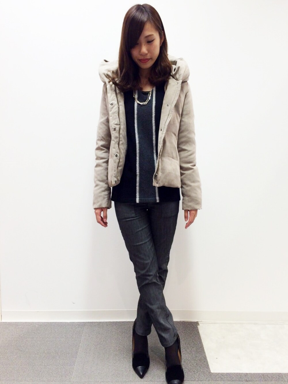 22 OCTOBRE Staffのダウンジャケット/コート「フェイクスエードダウンジャケット」を使ったコーディネート